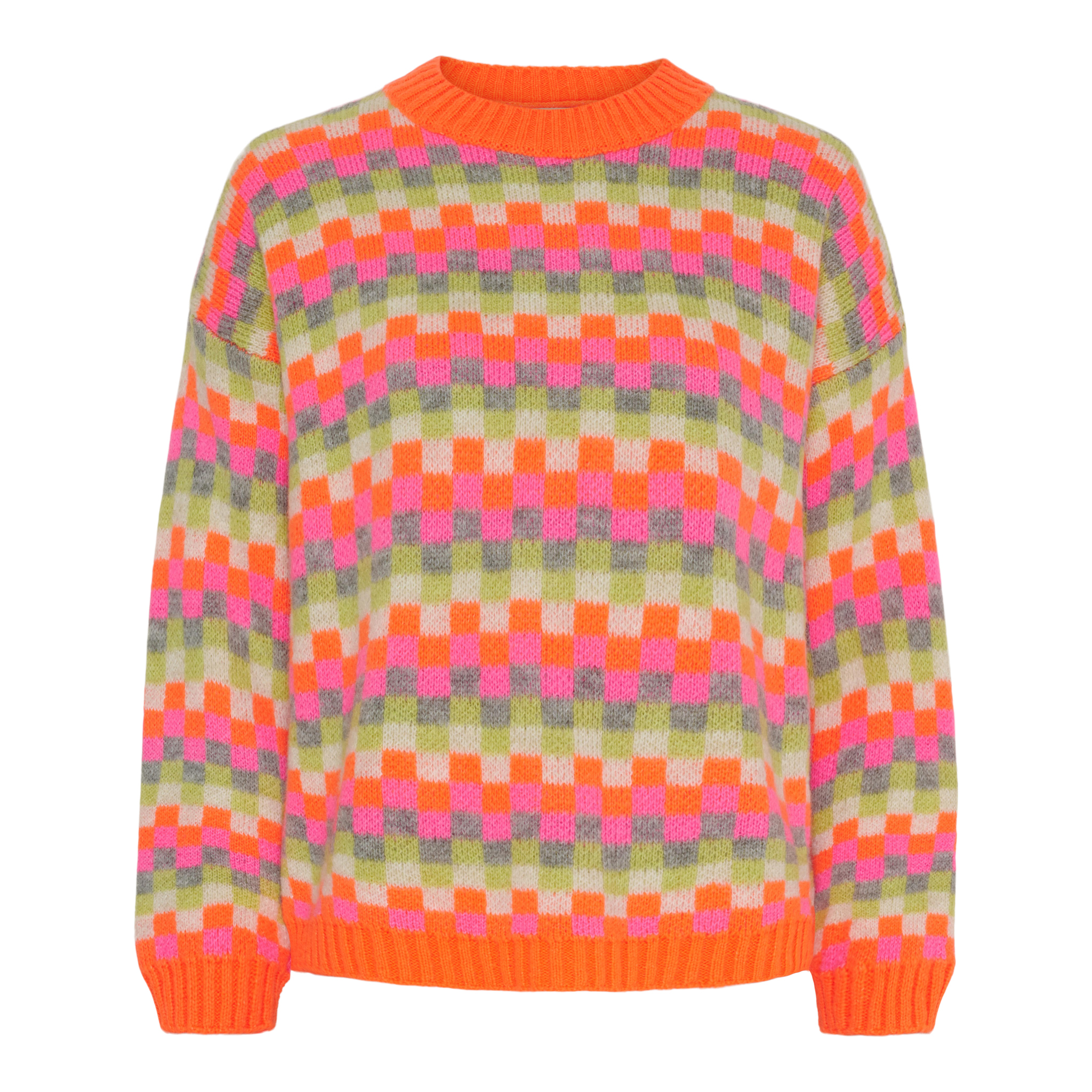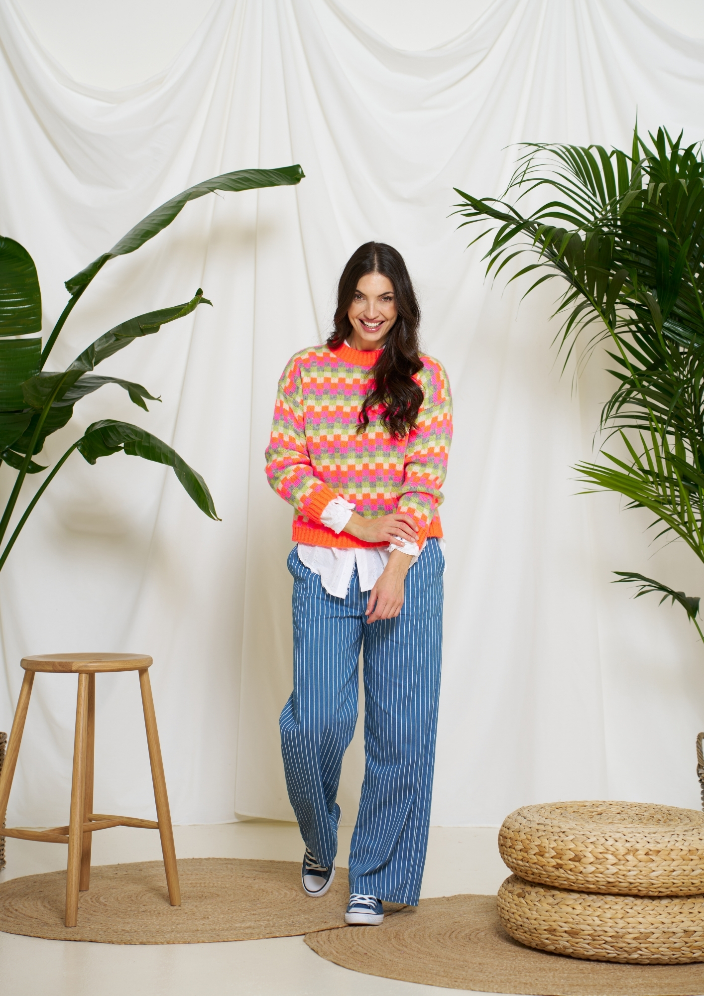 Add some colour to your wardrobe with this vibrant neon patterned crew neck jumper.