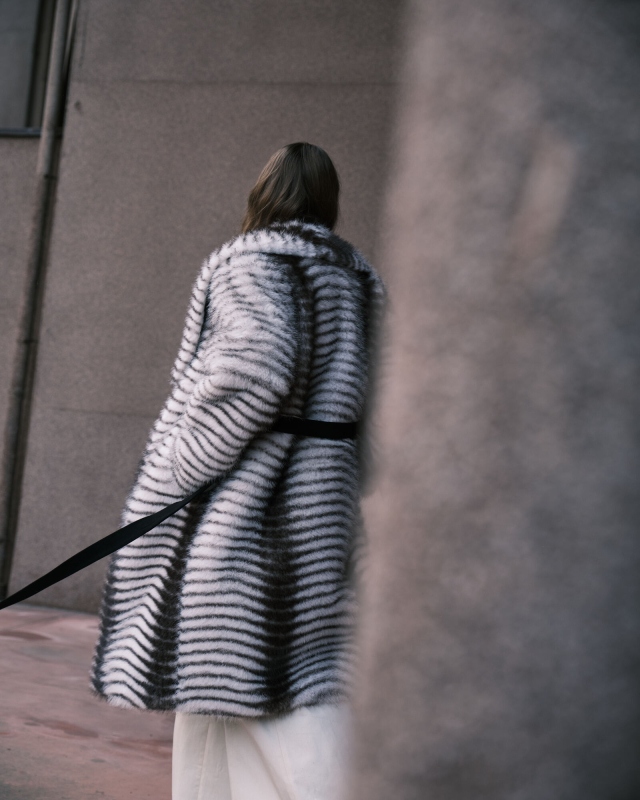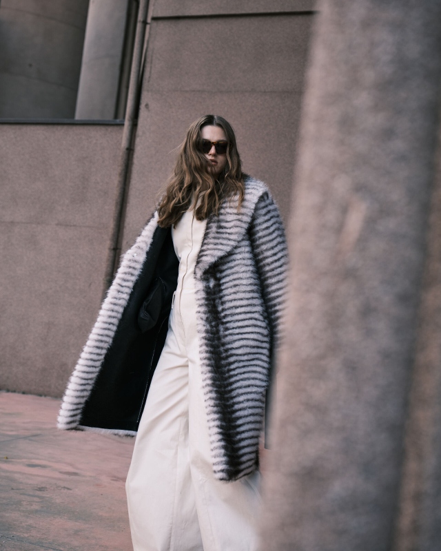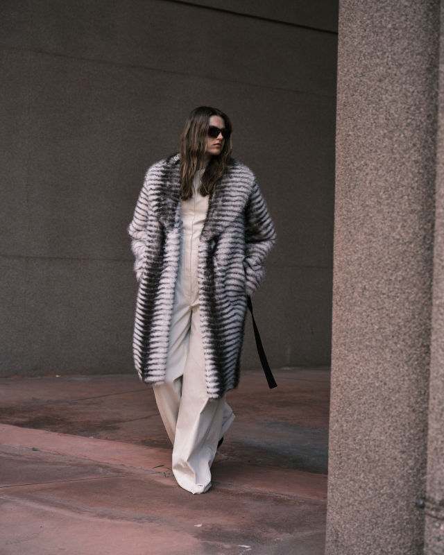 Super soft, luxurious faux fur coat in a striking striped animal print.
