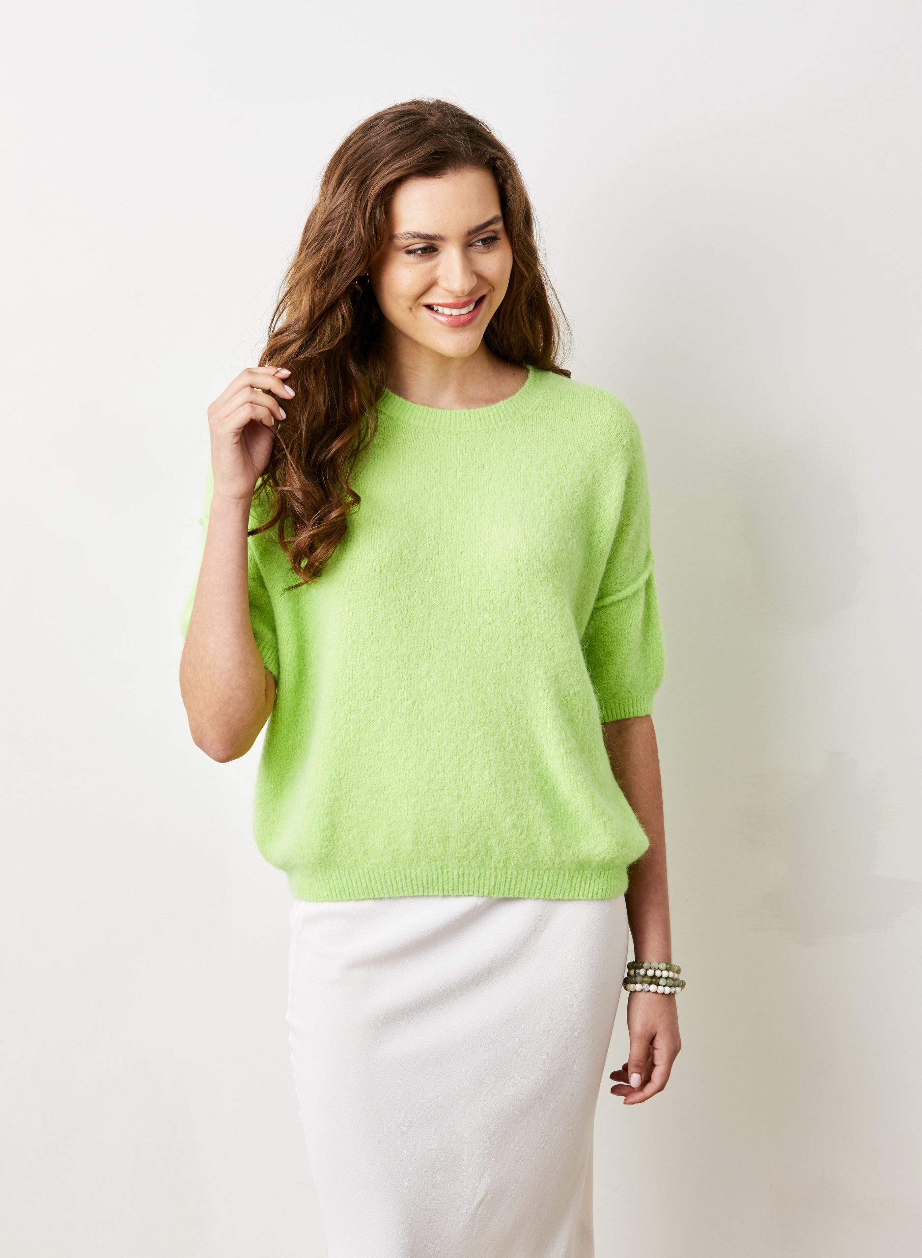 Super soft, neon green, alpaca-mix jumper with short sleeves and a relaxed fit.