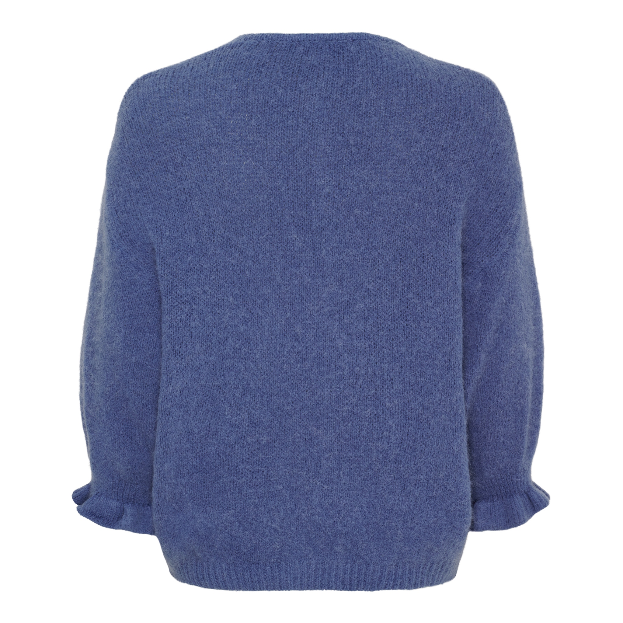Super soft, alpaca mix cardigan with three-quarter length puffed sleeves in a flattering denim blue.