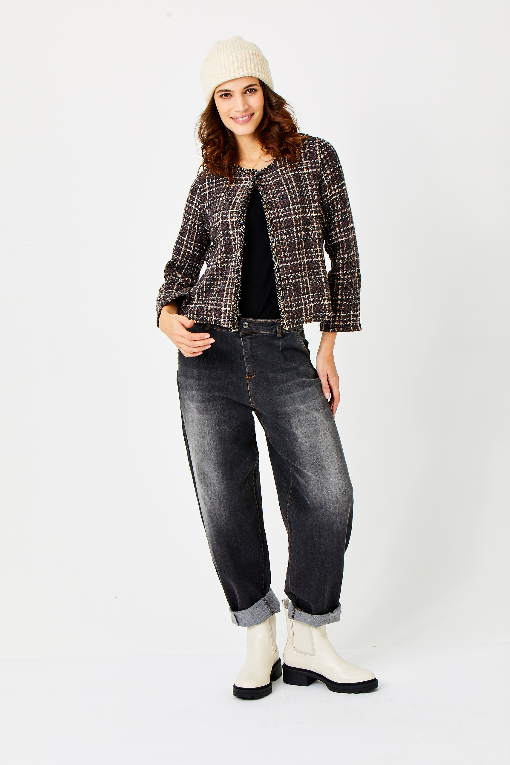 Super soft, deep blue jean in a barrel leg, relaxed fit that continues to be bang on the trend for Autumn-Winter. With two front pleats and a higher waist fit, these jeans have a washed deep blue finish with a slightly distressed finish.