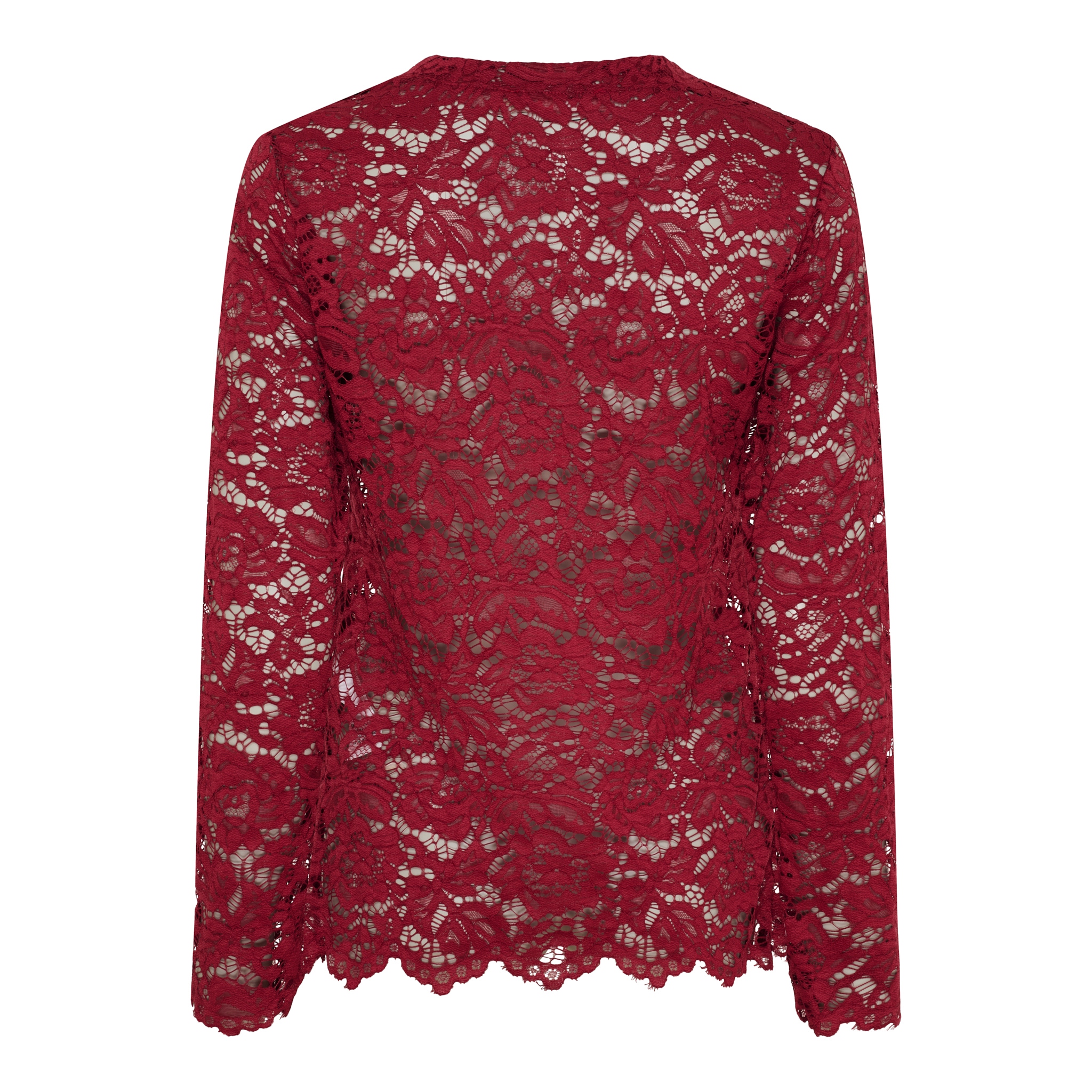 Lacey long sleeved top with round neck and pretty scalloped edge to the hem and sleeves.
