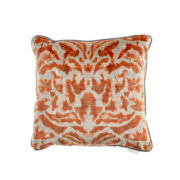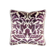 Gorgeous cobalt blue printed velvet accent cushion, beautifully made in the UK by Voyage Maison. Front is printed velvet, with a neutral plain linen back.