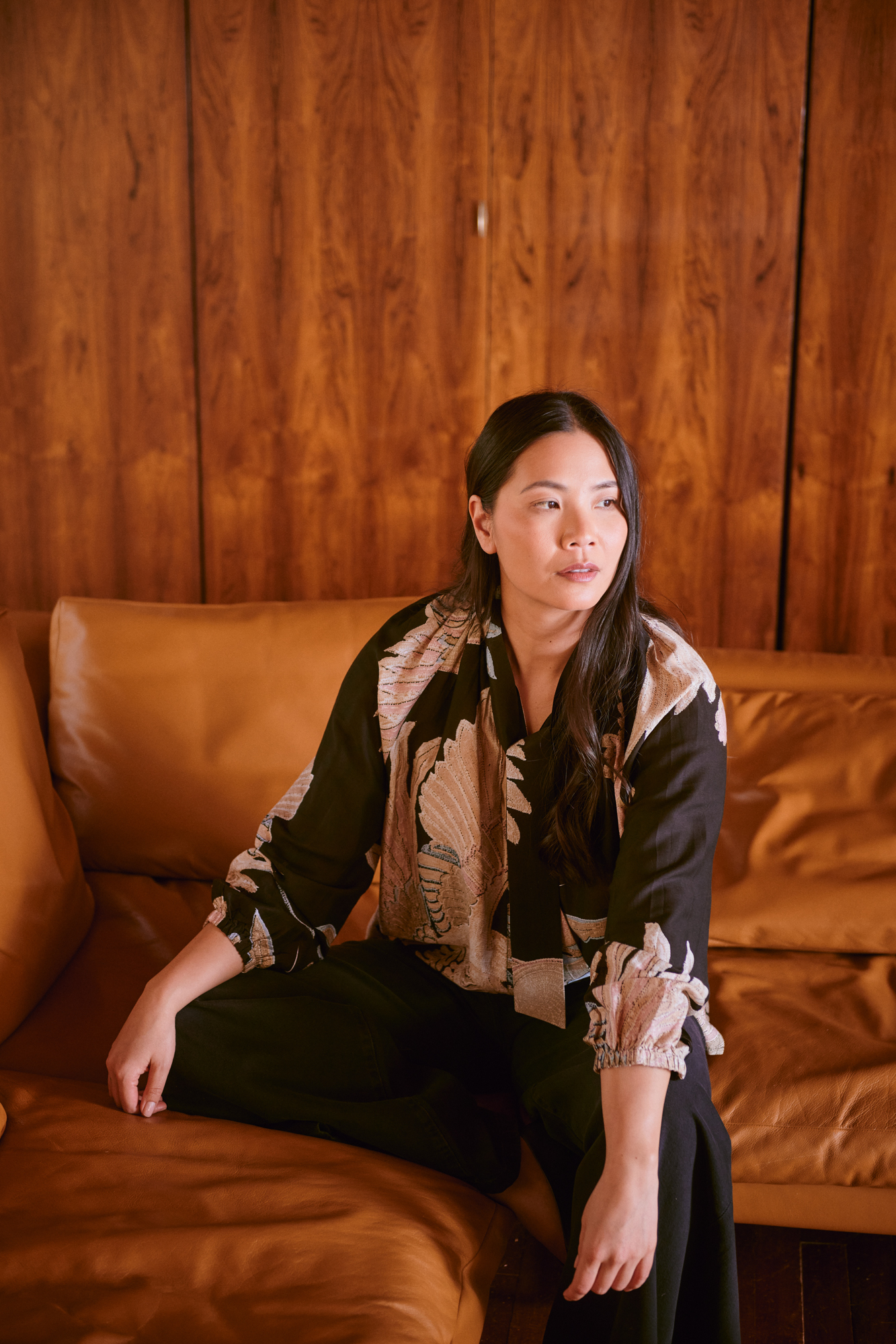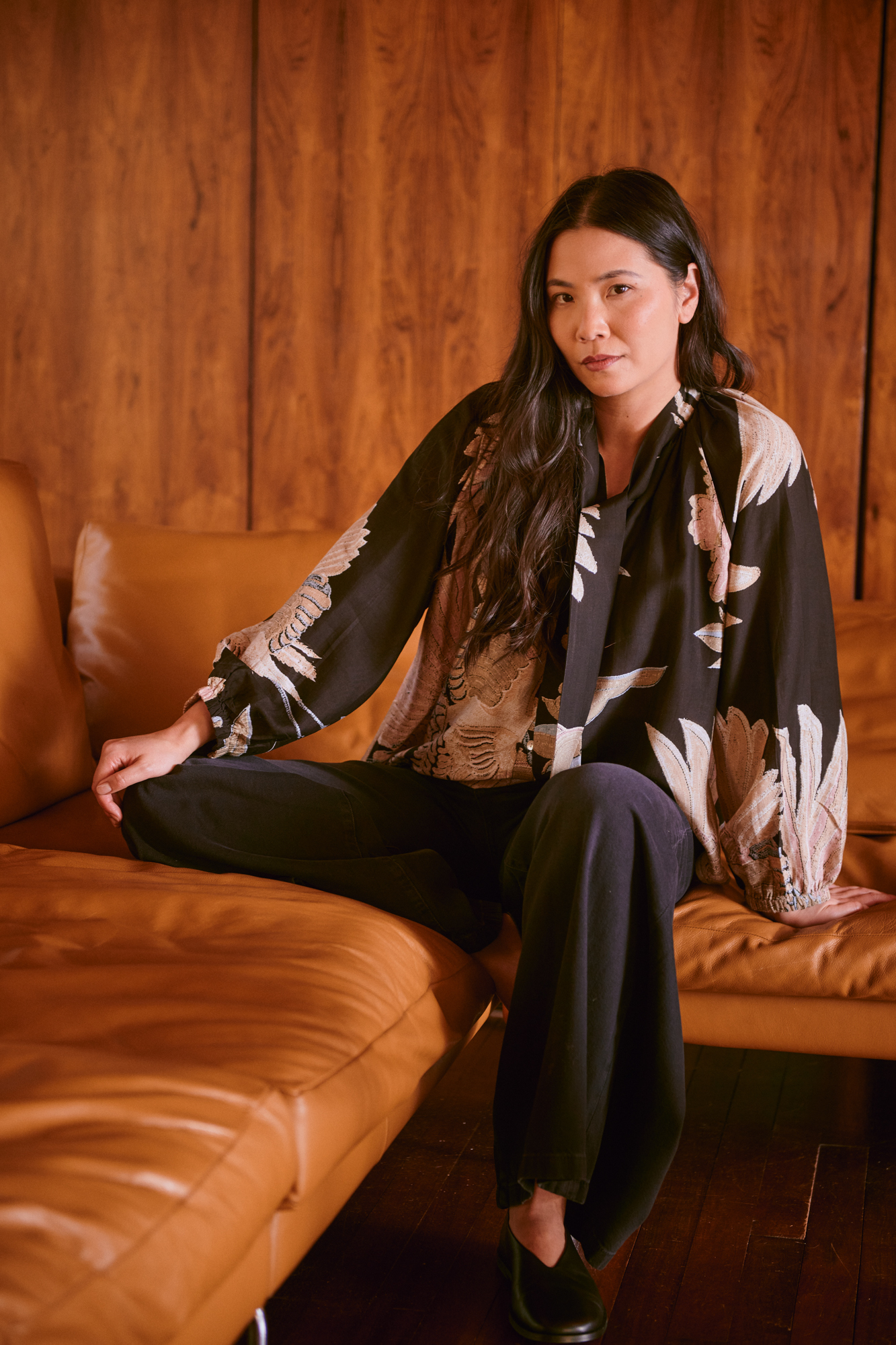 Elegant new season Pussy Bow Blouse by One Hundred Stars in the gorgeous Crane Black design. This blouse exudes a sophisticated vibe and drapes beautifully.